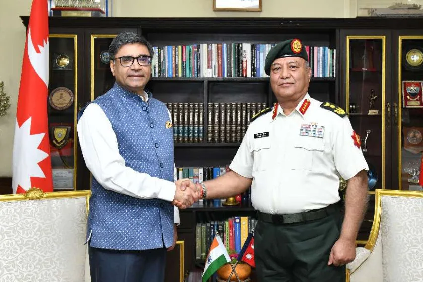 काठमाडौं । दुई दिने भ्रमणमा आएका भारतीय विदेशसचिव विक्रम मिश्रीले जंगीअड्डा पुगेर प्रधानसेनापति अशोकराज सिग्देलसँग भेटवार्ता गरेका छन् । सोमबार बिहान जंगीअड्डा पुगेर उनले सिग्देलसँग भेट गरेका हुन् । भेटका क्रममा दुईपक्षीय हितको विषयमा कुराकानी भएको जंगीअड्डा स्रोतले जनाएको छ ।