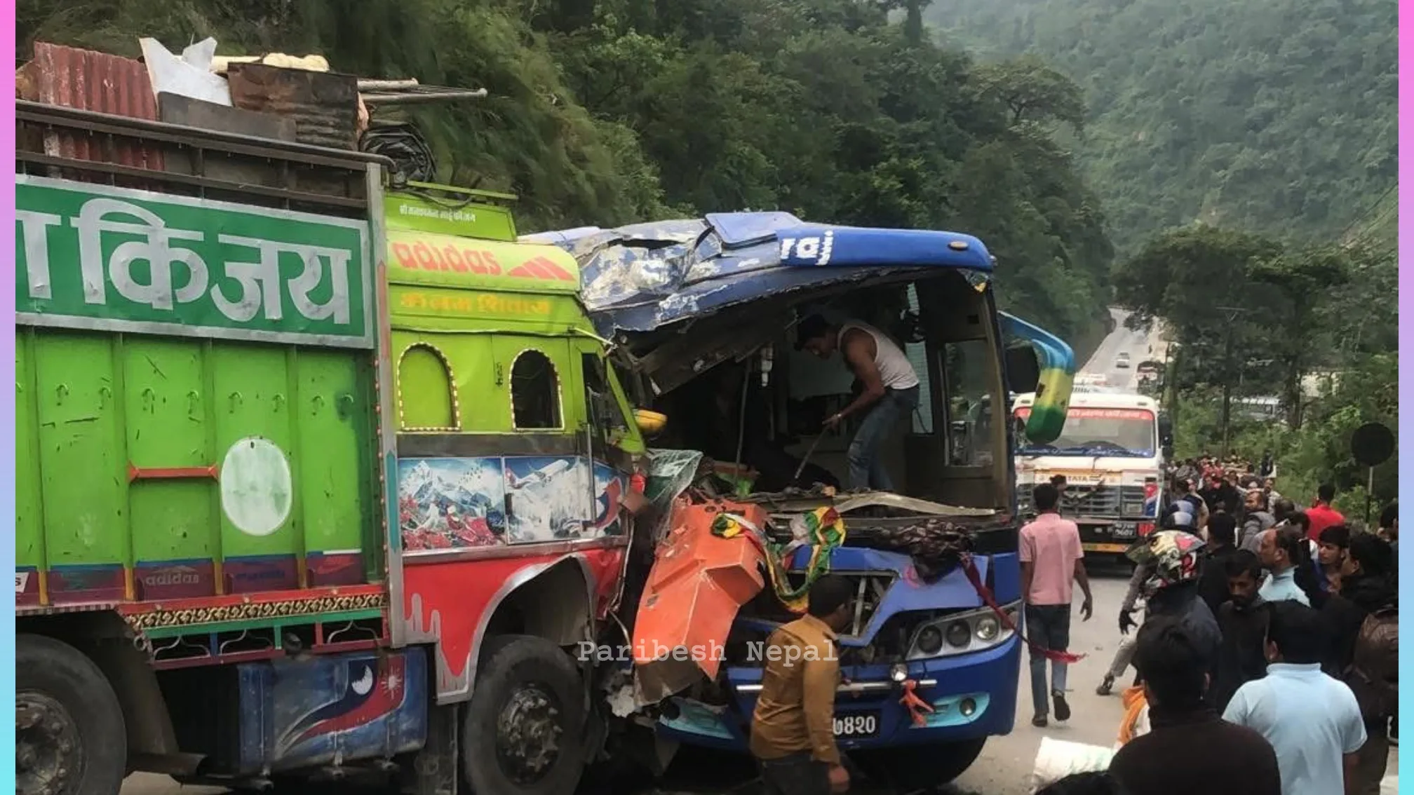 इलाका प्रहरी कार्यालय मुग्लिनका अनुसार, एक ट्रकले बसलाई ठक्कर दिएपछि त्यसपछि आएका अन्य सवारी साधनहरू समेत ती ट्रक र बसमा ठोक्किँदा दुर्घटना भएको हो।